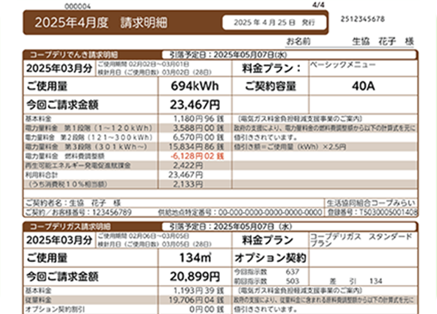 コープデリでんきは再生可能エネルギーの比率にこだわったCO2排出ゼロの「再生可能エネルギー100%メニュー」と東京電力エナジーパートナーの従量電灯B・C契約よりおトク※な「ベーシックメニュー」の2種類となります。コープデリガスは東京ガス一般契約プランと比較すると3%程度安価な「スタンダードプラン」、床暖房をご利用されている方向けの「床暖房プラン」の2種類となります。また、コープデリでんきと合わせてご契約いただくと月額120円(税込)割引となります。