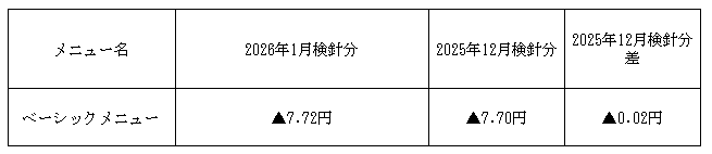 2026年1月検針分燃料費調整単価についてのお知らせ
