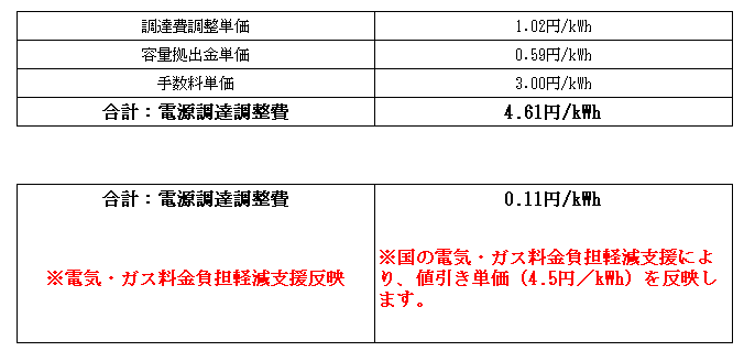 2026年2月検針分電源調達調整費の単価(電気・ガス料金負担軽減支援値引き反映)についてのお知らせ