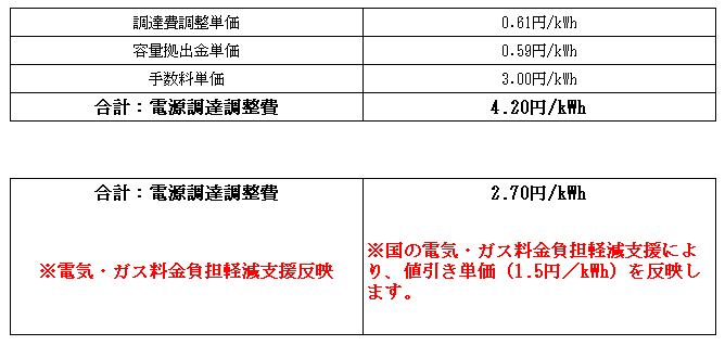 2026年4月検針分電源調達調整費の単価(電気・ガス料金負担軽減支援値引き反映)についてのお知らせ