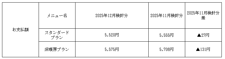 ※床暖房プランは、基本料金が「冬季:12月~4月」と「その他季:5月~11月」で変更になります。