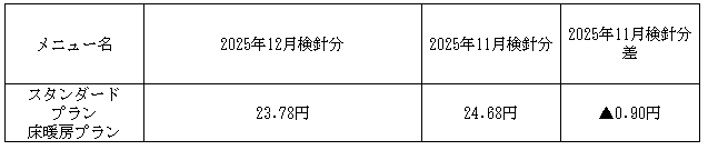 【コープデリガスにご契約中の皆さまへ】2025年12月検針分原料費調整単価についてのお知らせ