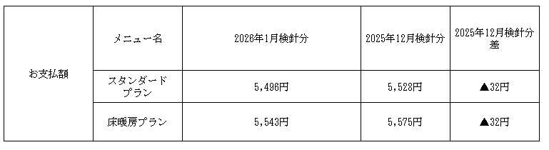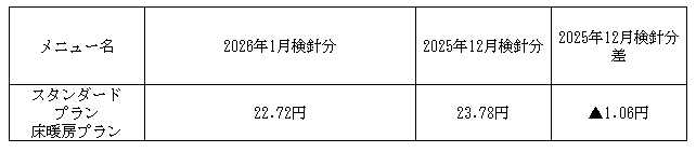 2026年1月検針分原料費調整単価についてのお知らせ
