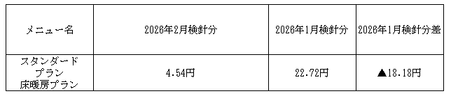 2026年2月検針分原料費調整単価(電気・ガス料金負担軽減支援値引き反映)についてのお知らせ