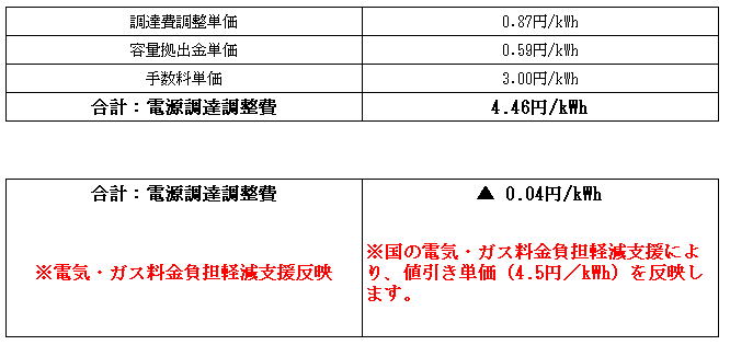 2026年3月検針分電源調達調整費の単価(電気・ガス料金負担軽減支援値引き反映)についてのお知らせ